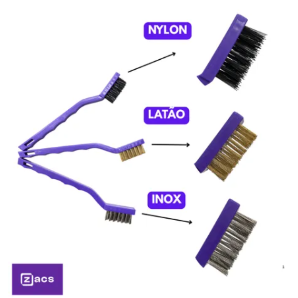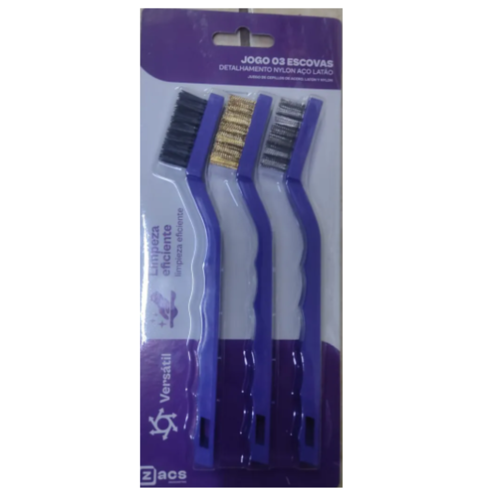 Jogo 03 escovas - detalhamento nylon aço latão - ZACS